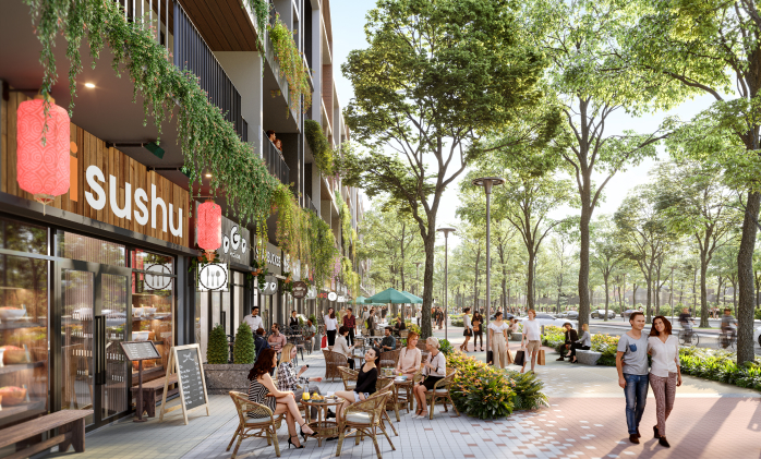 – Kiến trúc hiện đại, đồng bộ, phố đi bộ, vỉa hè rộng, tiện cho showroom – F&B – spa