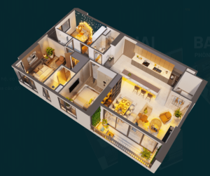 - 1 phòng bếp kết hợp khu vực ăn uống tiện nghi
